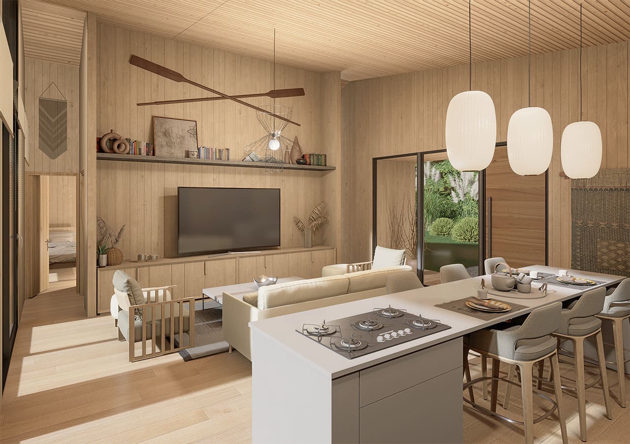 Gran Estar y cocina integrados.